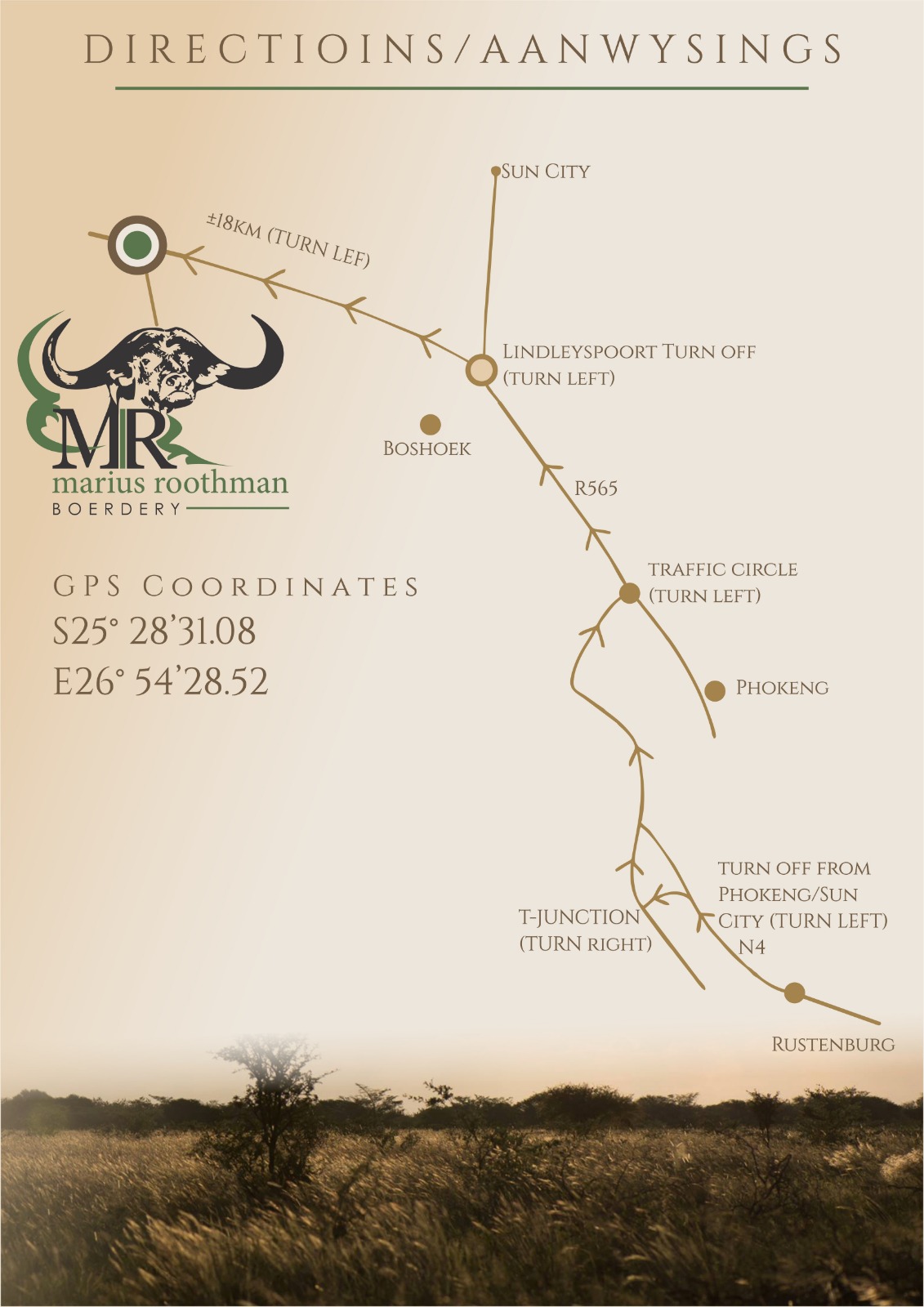 Contact Us Please enquire now Waterval,Swartruggens2188 E: brenda@mrft.co.zaP: +27 84 233 3222 Click on the Map to visit us: Map leads to our farmgate Book Now Name Email Address Message 10 + 5 = Submit Hunting Enquiry Name Email Address Message 7 + 8 = Submit